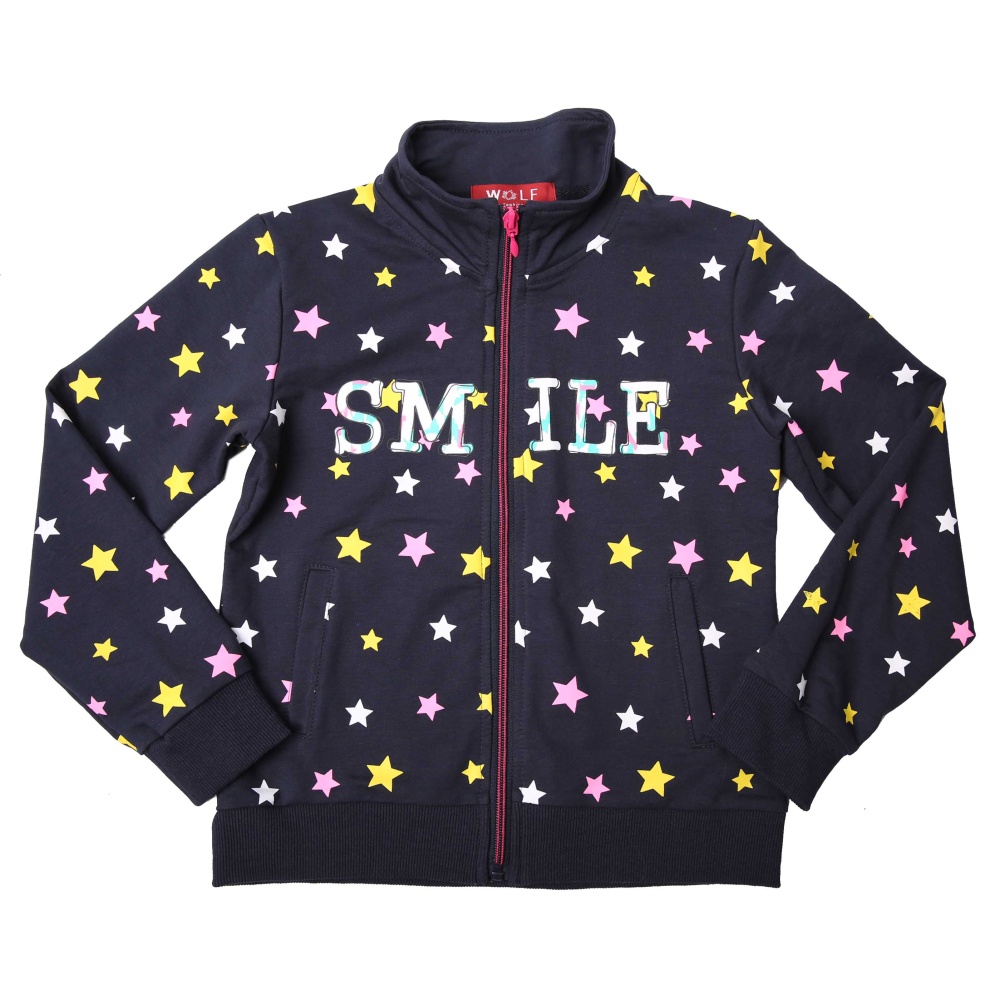 Bavlněná mikina Wolf M2255 pro holky z kolekce podzim / zima 2022. Dívčí mikina Wolf je vyrobena z příjemného materiálu, který nežmolkuje, na rubu mikiny je smyčka. Zapínání na zip až ke krku. V předu dvě funkční kapsy, na mikině je potisk hvězdiček a vpředu je nápis "smile".