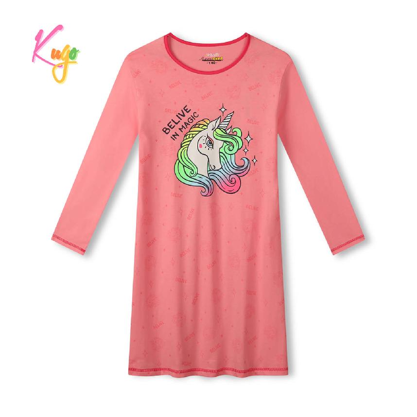 Dívčí junior noční košilka s dlouhým rukávem značky Kugo s obrázkem jednorožce. Noční košile je vyrobena z příjemného a kvalitního bavlněného materiálu.