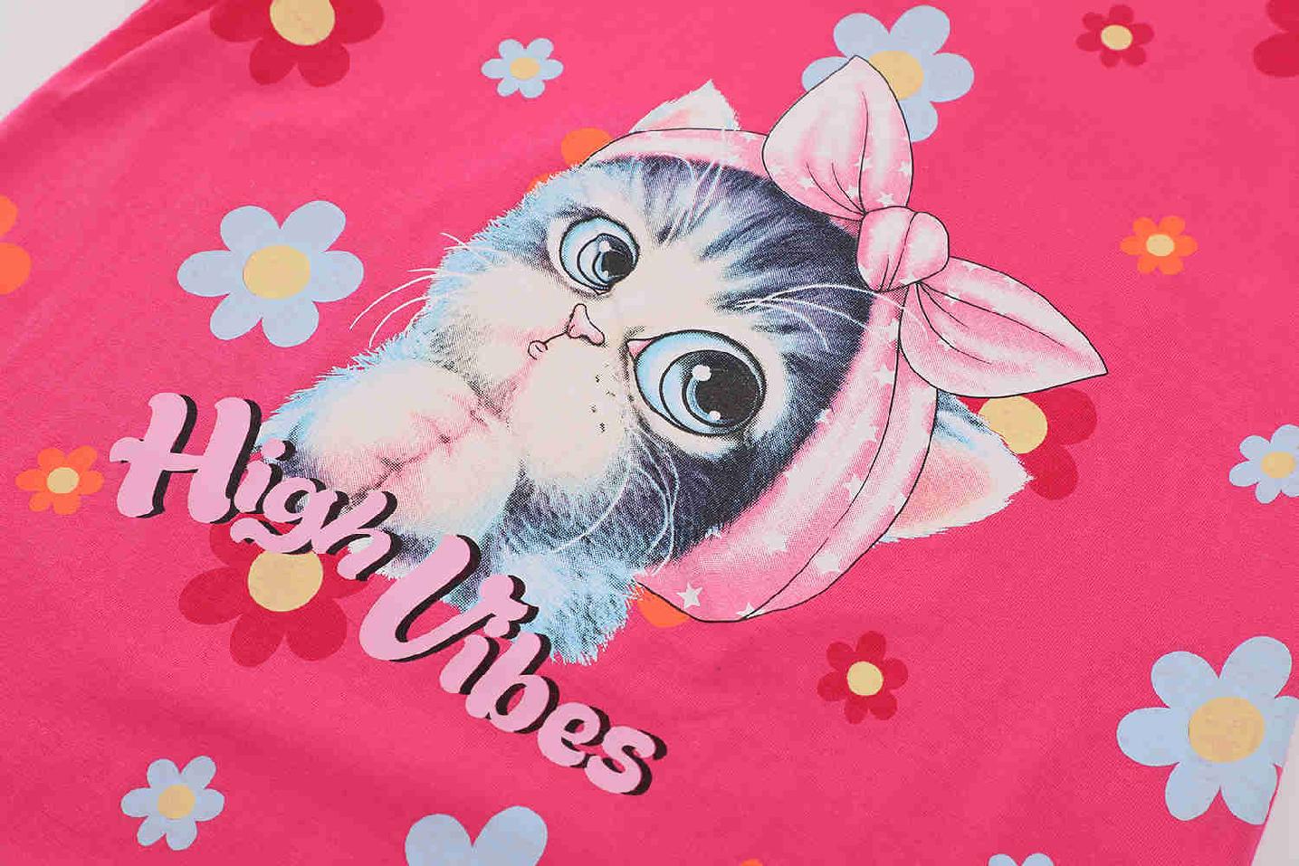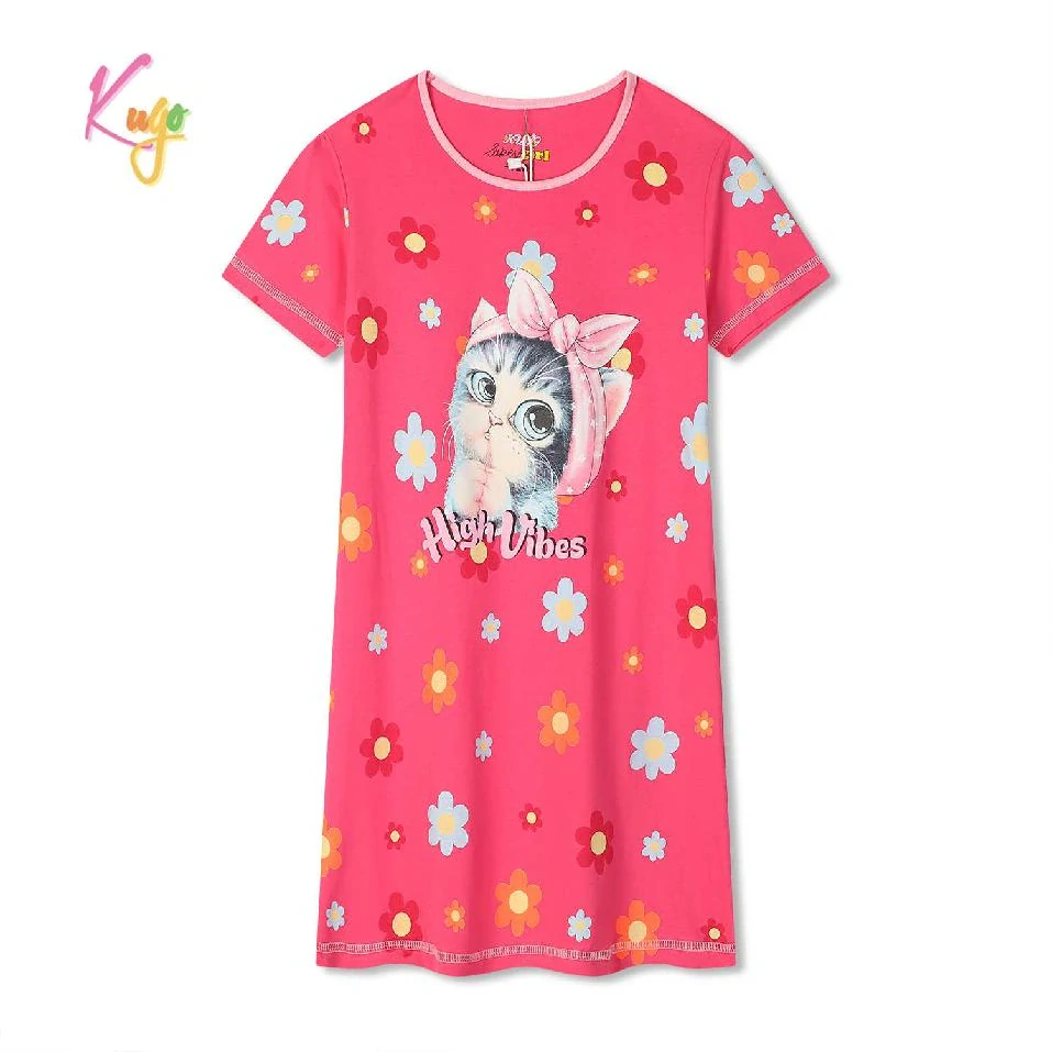 Krásná dívčí noční košilka s krátkým rukávem od firmy KUGO s kočičkou a kytičkami. Noční košilka je vyrobena z příjemného a kvalitního bavlněného materiálu.