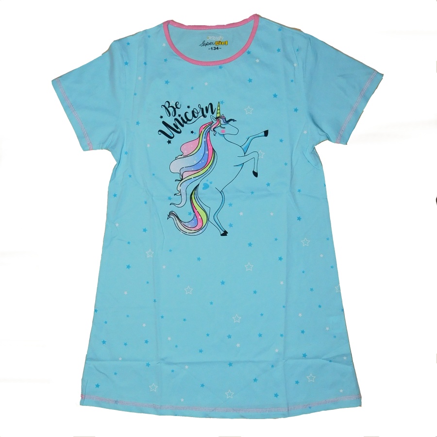 Krásná dívčí junior noční košilka s krátkým rukávem od firmy KUGO s obrázkem jednorožce. Noční košilka Kugo je vyrobena z příjemného a kvalitního bavlněného materiálu.
