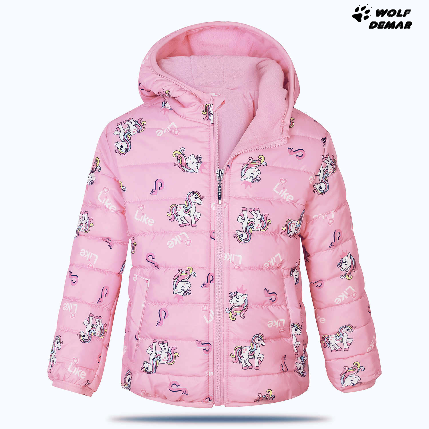 Dívčí podzimní šusťáková bunda s fleecovou podšívkou pro chladné podzimní dny. Bunda má kapucu, zapínání na zip až ke krku, u krku kryt zipu. Kapuca je napevno přišitá k bundě (nejde odepnout).