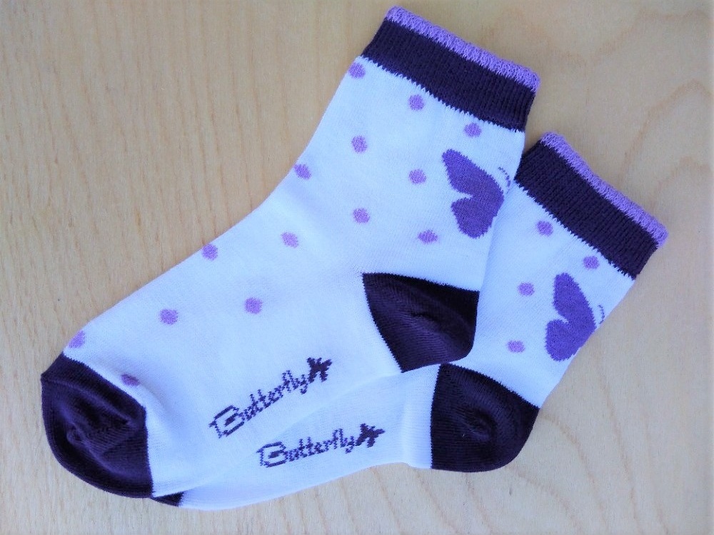 Dívčí ponožky od českého výrobce Trepon s obrázkem motýla. Originalita, pohodlí, styl. Kousek s oblíbeným motivem medvídka, který stojí za oživení dětského outfitu. Dětské ponožky TREPON jsou nejen pěkné na pohled, ale také jsou velice příjemné a pohodlné při nošení díky kvalitní dlouhovlákné bavlně a přidanému elastanu. Ponožky jsou prodyšné, velmi jemné a poskytují přirozené pohodlí. Paty a špice jsou zesíleny pro lepší odolnost prototi prošlapání. Extra plochý šev v oblasti prstů. Vhodné do volnočasové i sportovní obuvi.