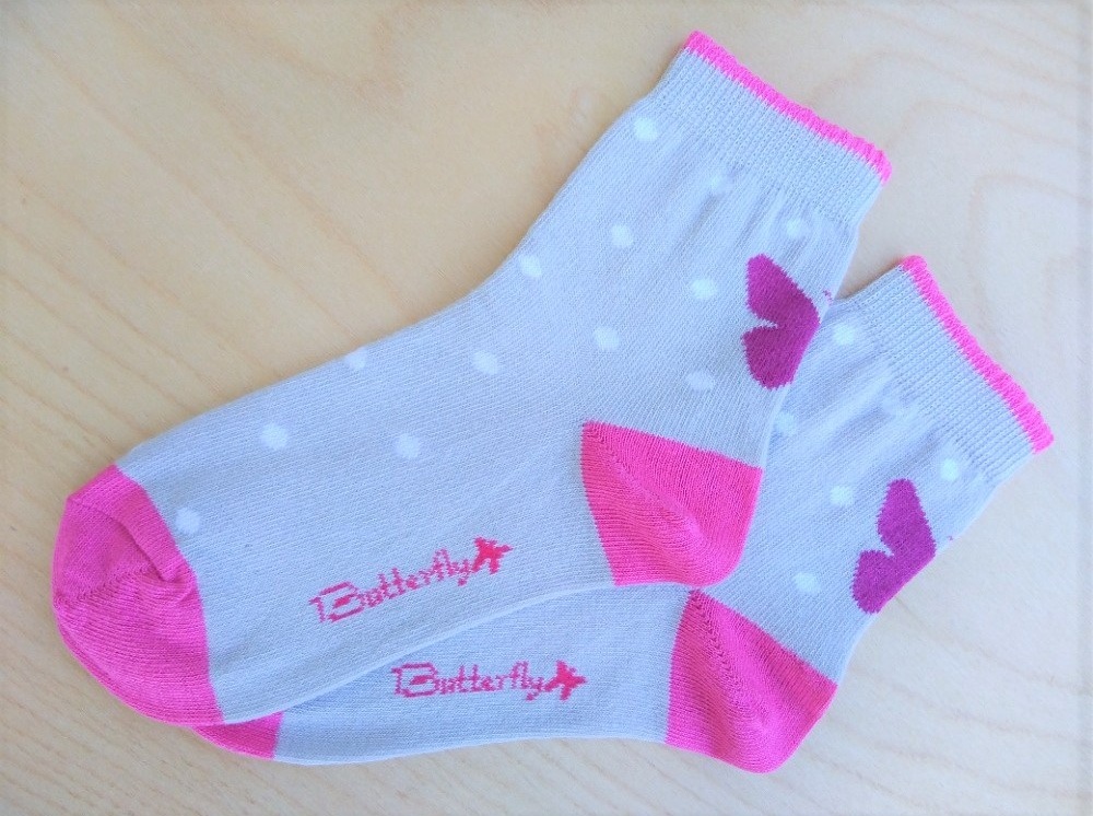Dívčí ponožky od českého výrobce Trepon s obrázkem motýla. Originalita, pohodlí, styl. Kousek s oblíbeným motivem medvídka, který stojí za oživení dětského outfitu. Dětské ponožky TREPON jsou nejen pěkné na pohled, ale také jsou velice příjemné a pohodlné při nošení díky kvalitní dlouhovlákné bavlně a přidanému elastanu. Ponožky jsou prodyšné, velmi jemné a poskytují přirozené pohodlí. Paty a špice jsou zesíleny pro lepší odolnost prototi prošlapání. Extra plochý šev v oblasti prstů. Vhodné do volnočasové i sportovní obuvi.