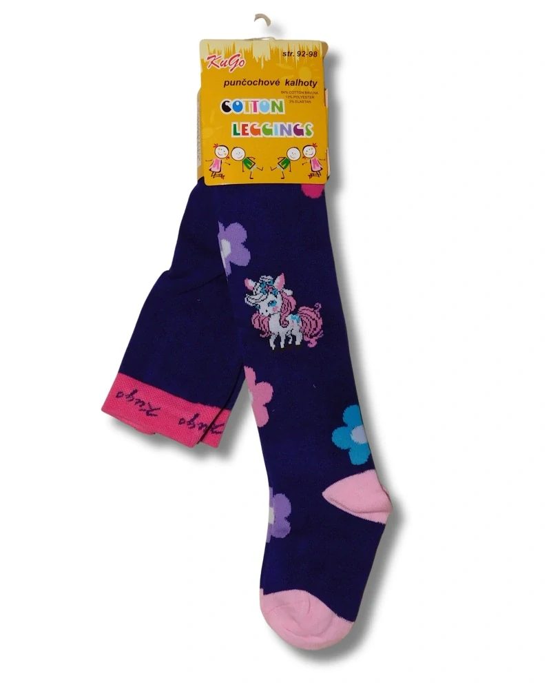 Dívčí punčocháče Kugo – fialové s jednorožcem a květinami