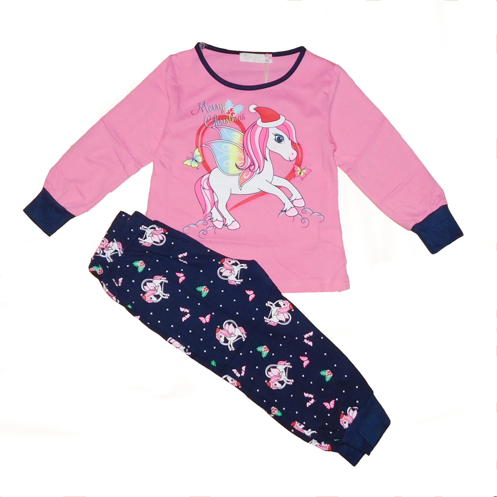 Dětské dívčí pyžamo ze 100% bavlny s obrázkem koníka od firmy KUGO. Rukávy a nohavice pyžama jsou zakončeny do lemu. Na triku nažehlený obrázek, kalhoty jsou jednobarevné s potiskem. Pyžamo KUGO MP3803 je vyrobeno z příjemného a kvalitního bavlněného materiálu.
