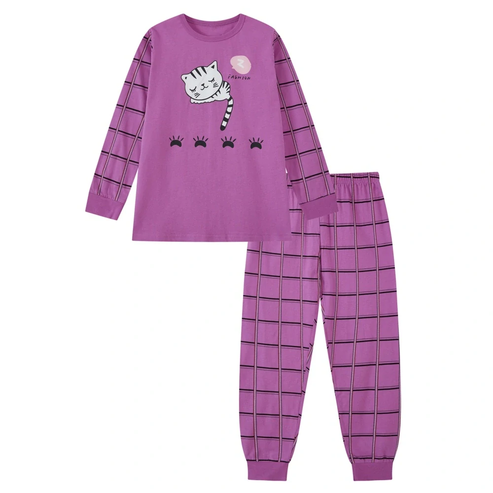 Dětské pyžamo pro dívky ze 100% bavlny oblíbené značky Wolf. Rukávy a nohavice pyžama jsou zakončeny do lemu. Na triku obrázek kočiček, kalhoty a rukávy jsou kostkované.