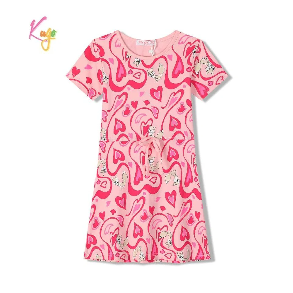 Dívčí šaty krátký rukáv Kugo DS9398 růžové s liškou