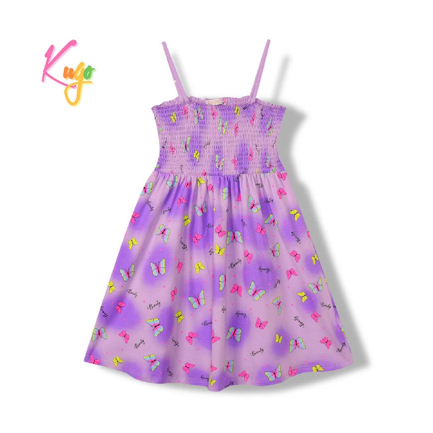 Dívčí letní šaty Kugo na ramínka s motýly. Ramínka jsou nastavitelná, vrchní část šatů je žebrovaná, sukně volná.