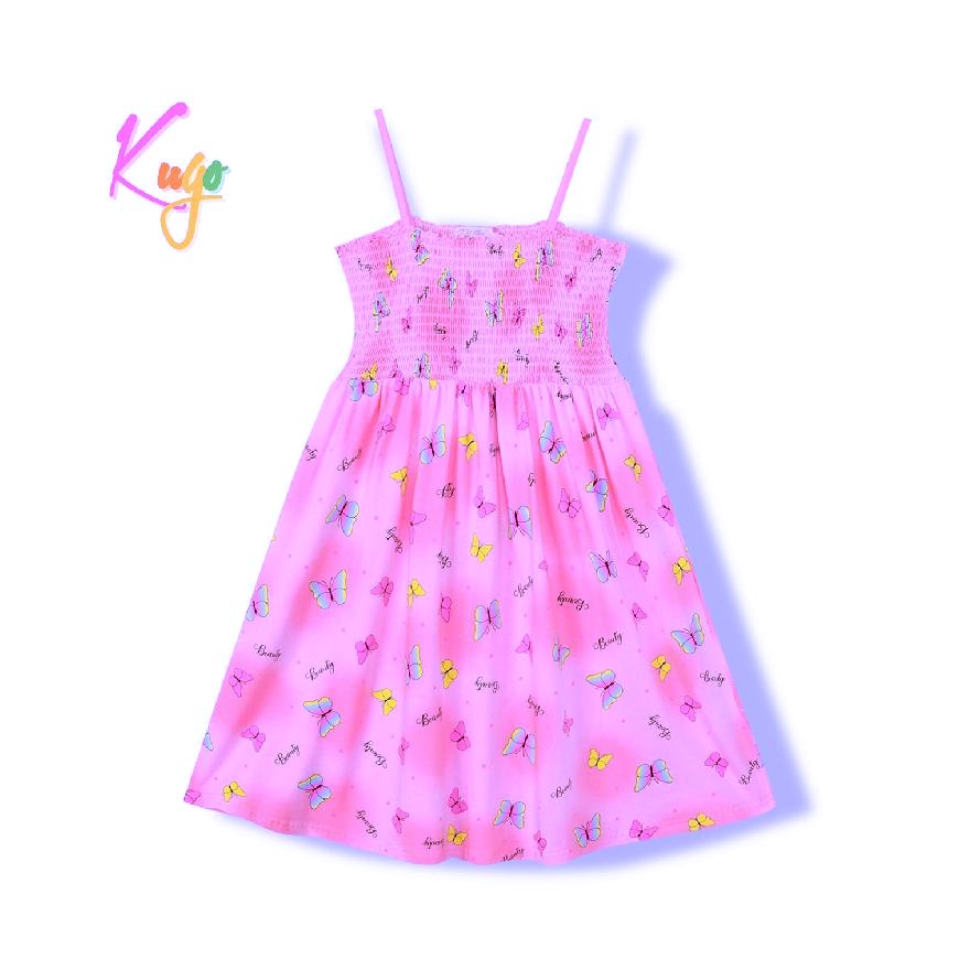 Dívčí letní šaty Kugo na ramínka s motýly. Ramínka jsou nastavitelná, vrchní část šatů je žebrovaná, sukně volná.
