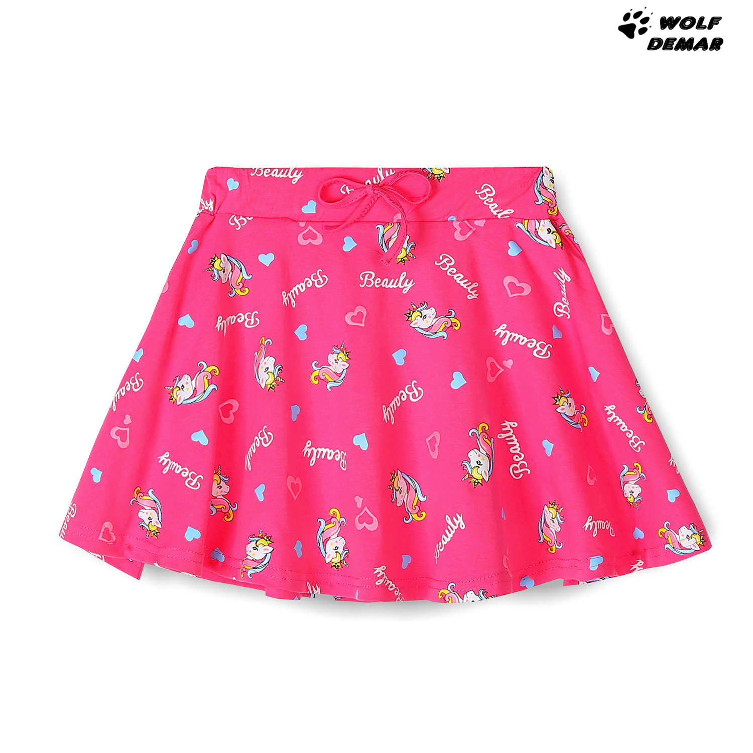 Bavlněná dívčí sukně v pase na gumu s potiskem. Sukně je vyrobena z příjemného bavlněného materiálu s příměsí elastanu.