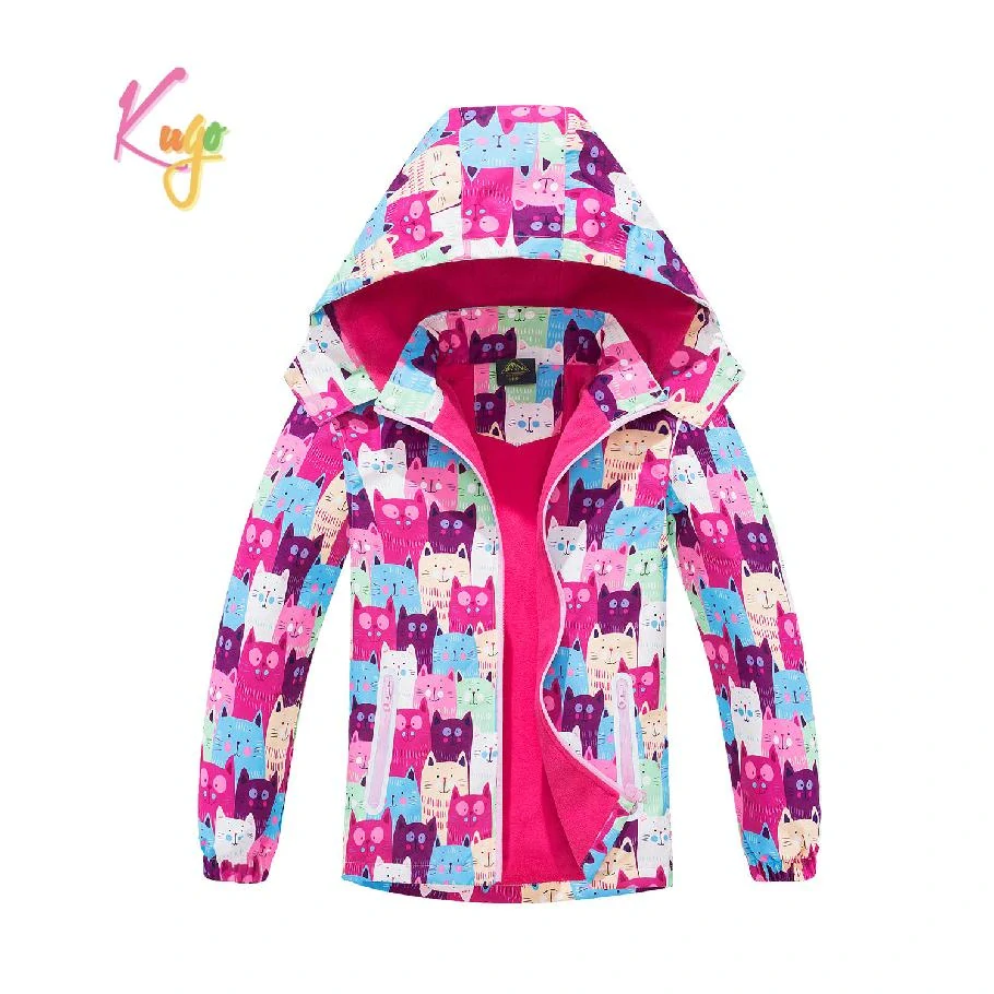 Dívčí jarní, podzimní šusťáková bunda s flísovou podšívkou pro chladnější jarní a podzimní dny. Bunda má zapínání na zip, rukávy jsou ukončené do gumy, spodní díl nelze stáhnou. Kapuce je odepínací, vpředu se dá zapnout na suchý zip. Bunda nepromokne a neprofoukne.