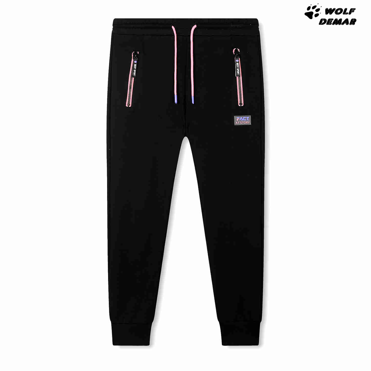 Dívčí tepláky Kugo v pase na gumu se šňůrkou na stažení, nohavice ukončené do lemu. Dvě kapsy se zapínáním na zip.