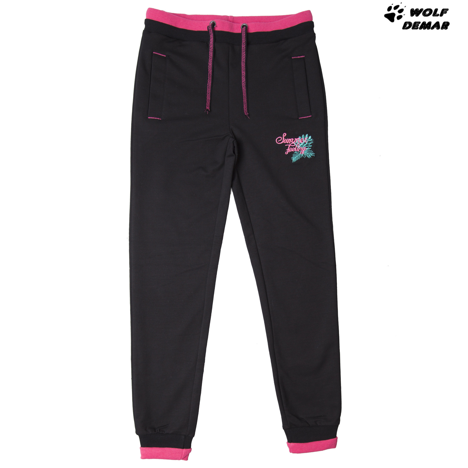 Krásné dívčí tepláky Wolf v pase na gumu, nohavice jsou ukončené lemem. V pase je šňůrka na stažení. Dívčí tepláky Wolf je možné zakoupit ve velikosti 134-164 a dvou barevných provedeních.