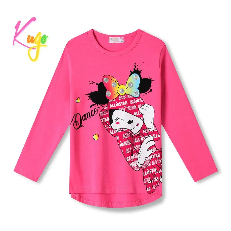 Moderní dívčí tričko s dlouhým rukávem od firmy Kugo s obrázkem myšky Minnie. Tričko Kugo HC0748 pro dívky je vyrobené z kvalitního bavlněného materiálu s příměsí elastanu.