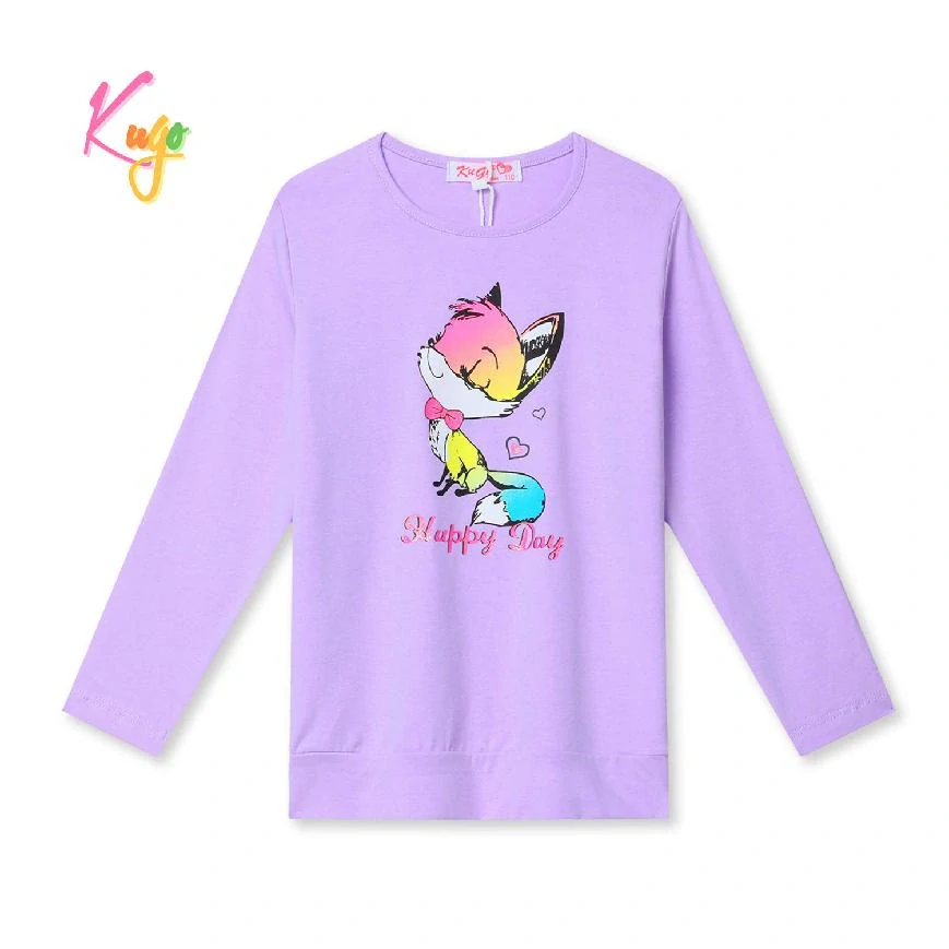Moderní dívčí tričko / tunika s dlouhým rukávem od firmy Kugo s obrázkem lištičky. Tričko Kugo HC09295 pro dívky je vyrobené z kvalitního bavlněného materiálu s příměsí elastanu.