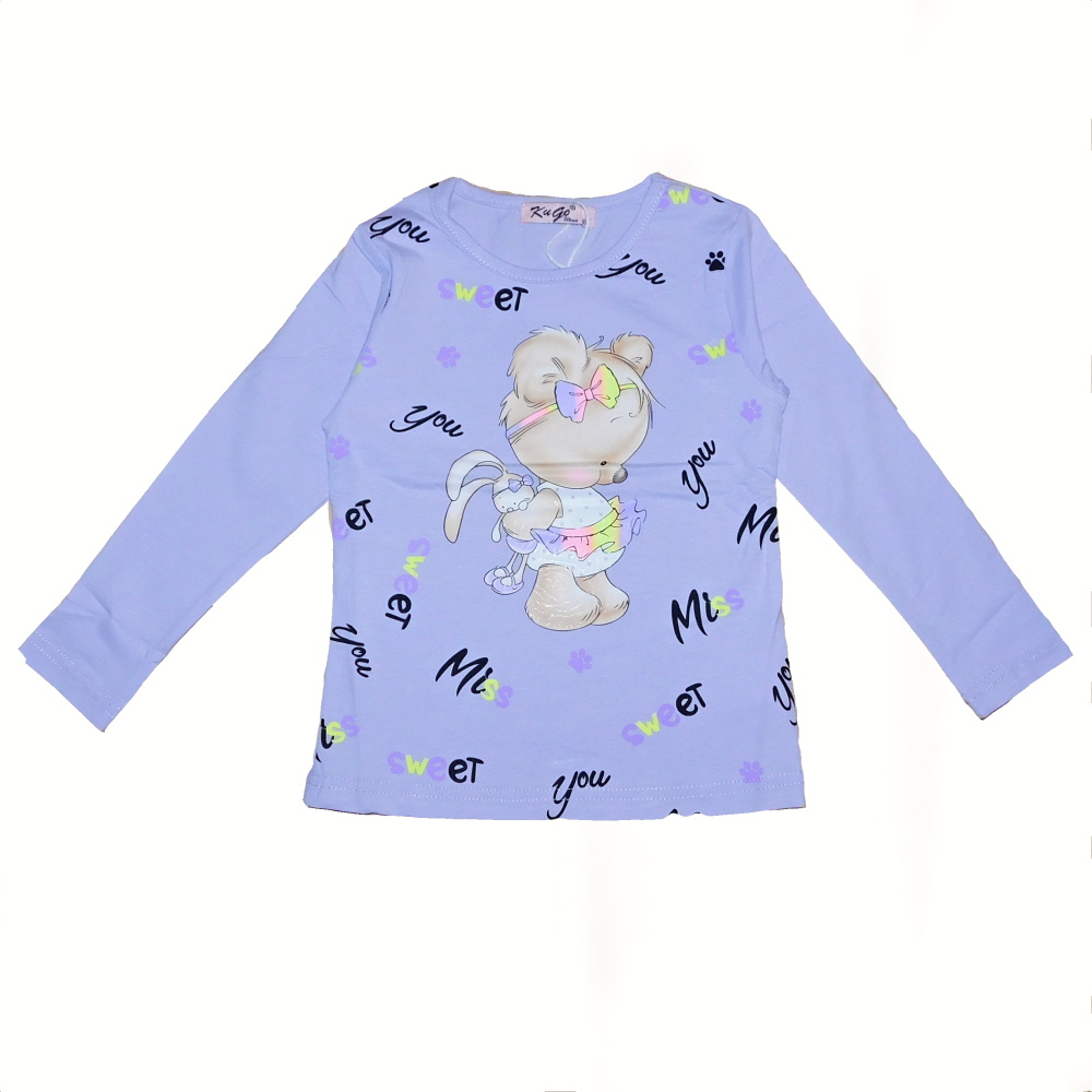 Stylové dívčí tričko s dlouhým rukávem od firmy Kugo s obrázkem medvídka na předním dílu.