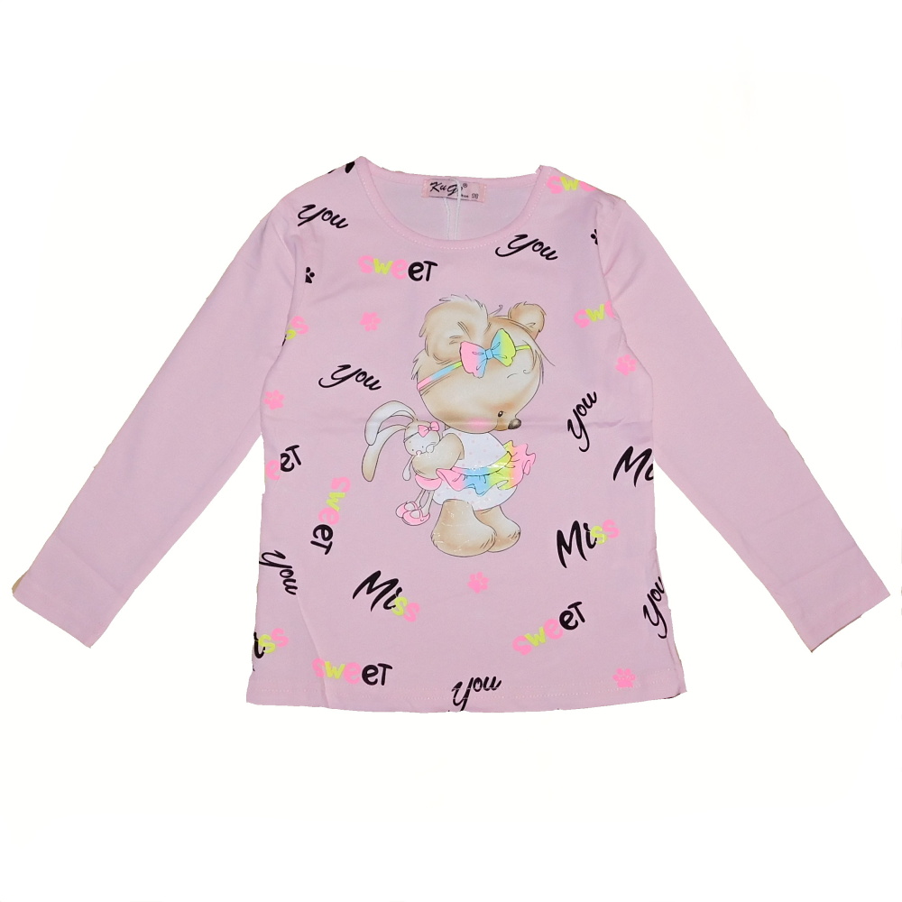 Dívčí tričko KUGO KC9992 dlouhý rukáv Velikosti: 98, 104, 110, 116, 122, 128 Stylové dívčí tričko s dlouhým rukávem od firmy Kugo s obrázkem medvídk...