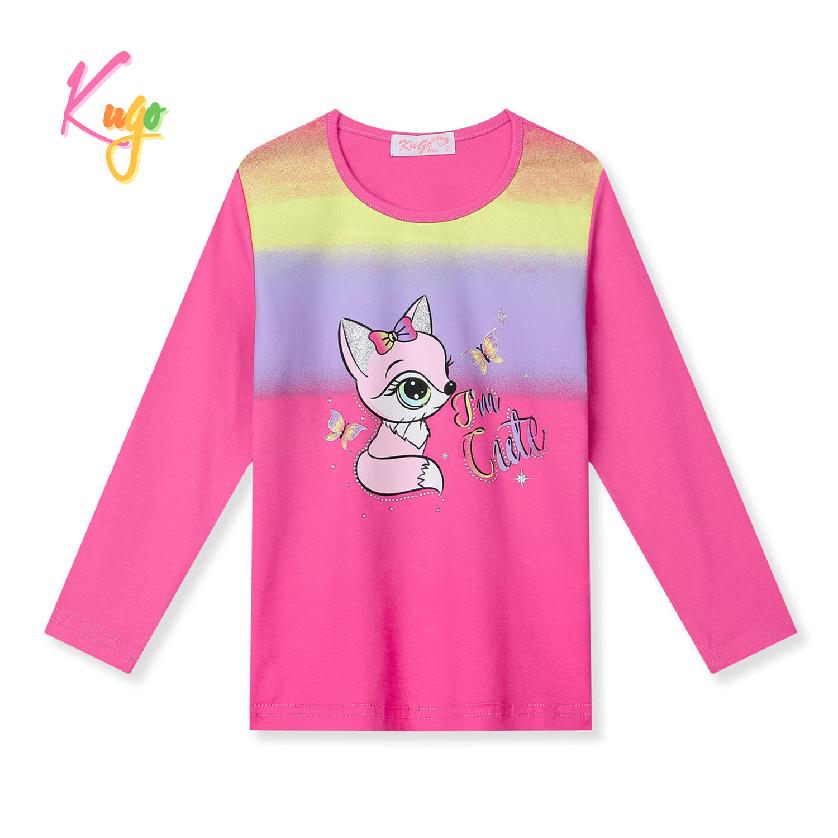 Moderní dívčí tričko s dlouhým rukávem od firmy Kugo s obrázkem malé lištičky na předním dílu. Tričko Kugo MC3822 je vyrobené z kvalitního bavlněného materiálu s příměsí elastanu.