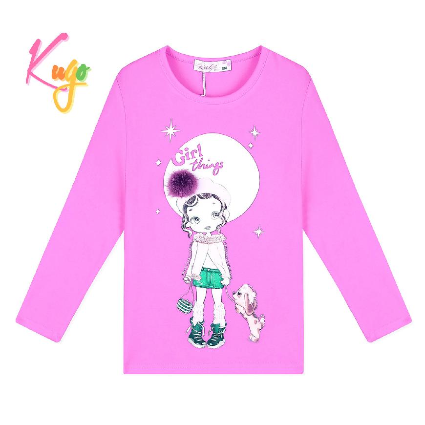 Moderní dívčí tričko s dlouhým rukávem od firmy Kugo s obrázkem holčičky s pejskem na předním dílu. Tričko Kugo TM6221 je vyrobené z kvalitního bavlněného materiálu s příměsí elastanu.