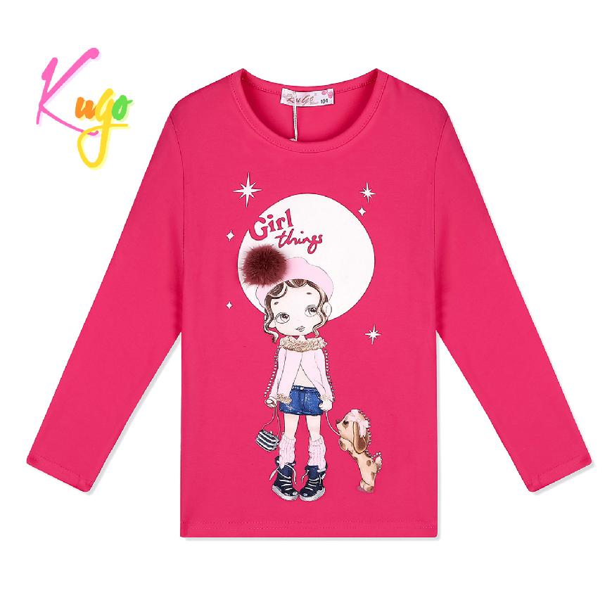 Moderní dívčí tričko s dlouhým rukávem od firmy Kugo s obrázkem holčičky s pejskem na předním dílu. Tričko Kugo TM6221 je vyrobené z kvalitního bavlněného materiálu s příměsí elastanu.