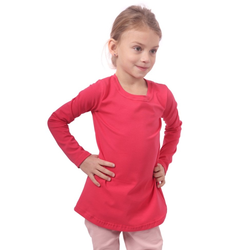Dívčí tričko s dlouhým rukávem a prodlouženým zadním dílem.