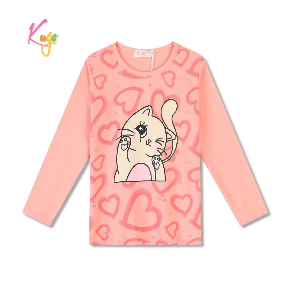 Roztomilé, hravé a pohodlné! Dívčí tričko s dlouhým rukávem Kugo v krásné lososové barvě si zamilují malé princezny i rodiče. Srdíčka a kočička potěší každou holčičku, která má ráda veselé dívčí oblečení a jemné barvy.