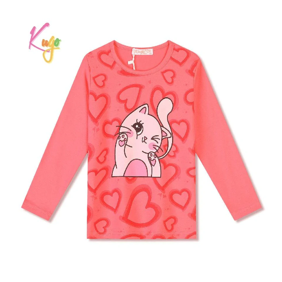 Dívčí tričko s dlouhým rukávem Kugo FT1210 – lososové