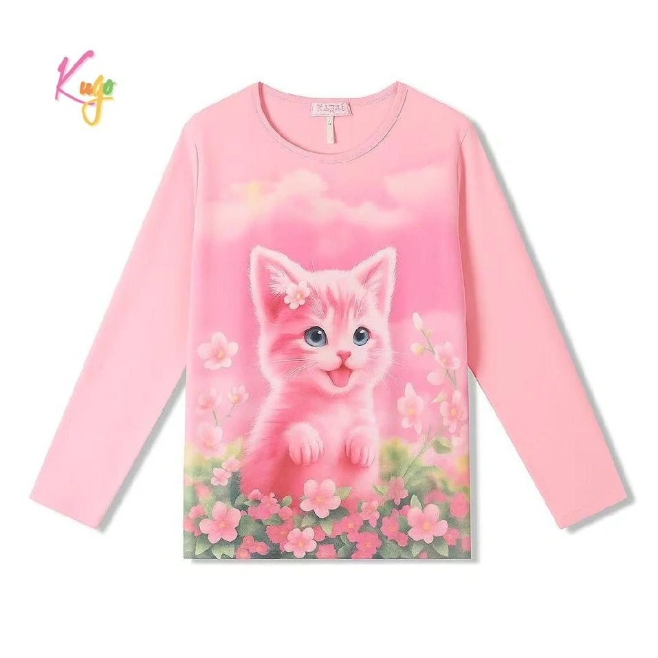 Roztomilé dívčí tričko Kugo s dlouhým rukávem potěší všechny malé milovnice kočiček. Tričko je vyrobené z příjemného materiálu (95 % bavlna, 5 % elastan), který je měkký, pružný a pohodlný na nošení po celý den.