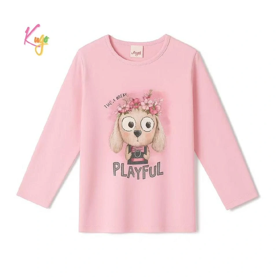 Dívčí tričko dlouhý rukáv Kugo WK1214 světle růžové