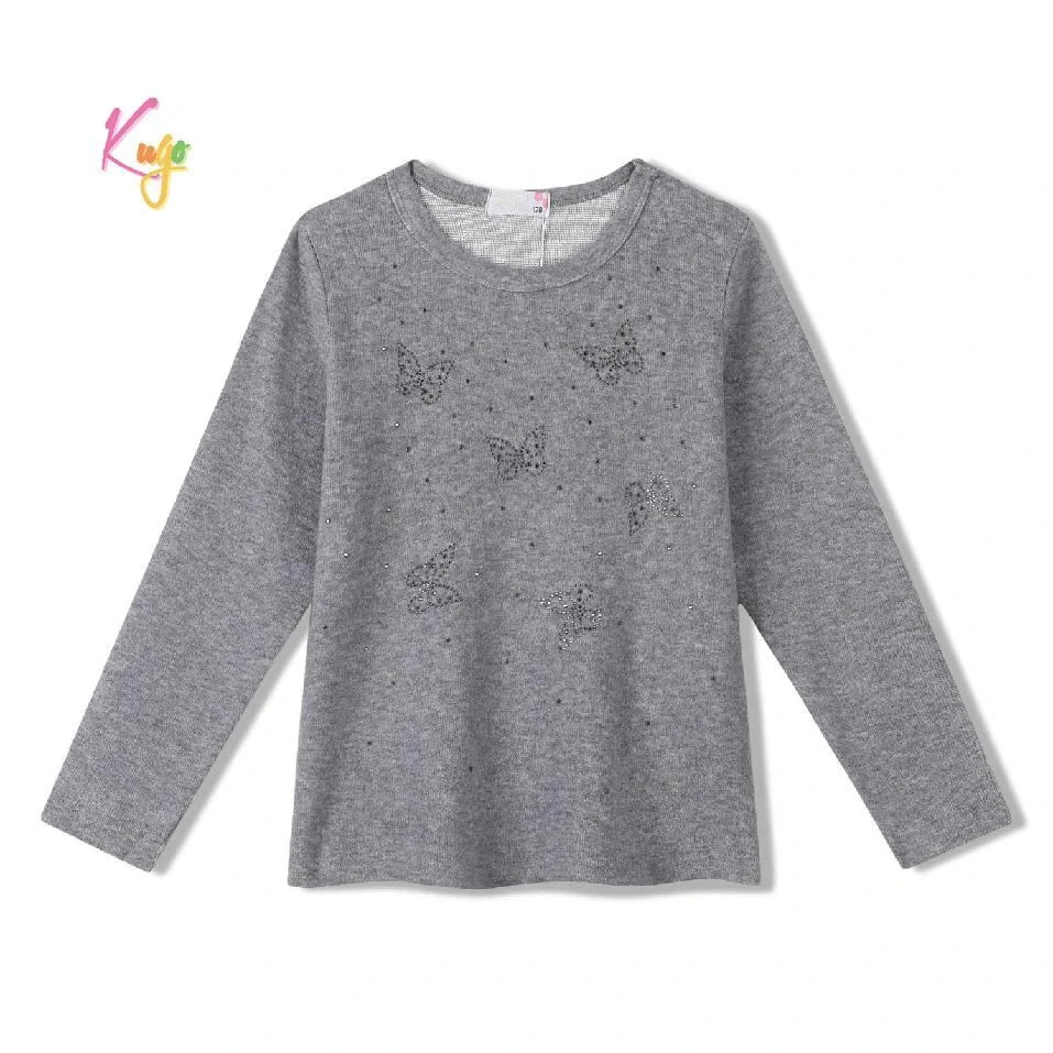 Stylové dívčí tričko Kugo v elegantní šedé barvě okouzlí každou slečnu, která má ráda módní a originální oblečení. Tričko je zdobeno třpytivými motýly.