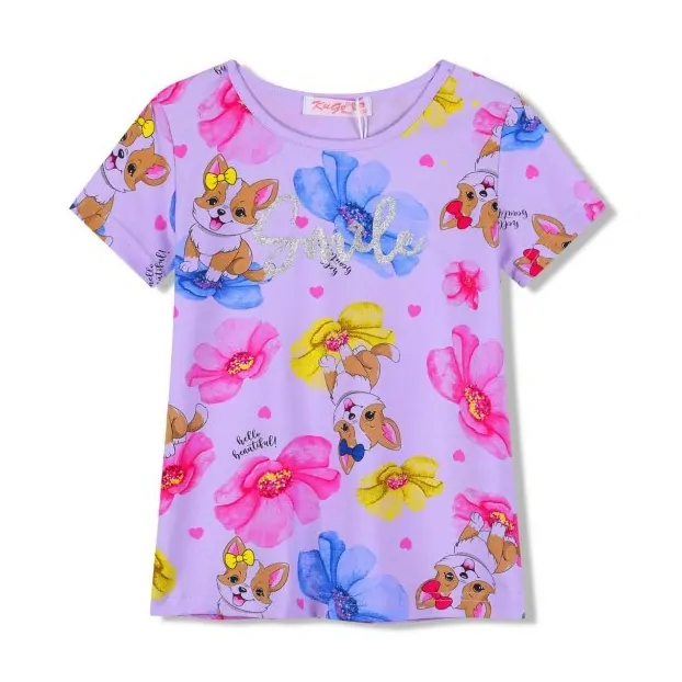 Dívčí bavlněné tričko Kugo s krátkým rukávem a obrázky pejsků a květ...