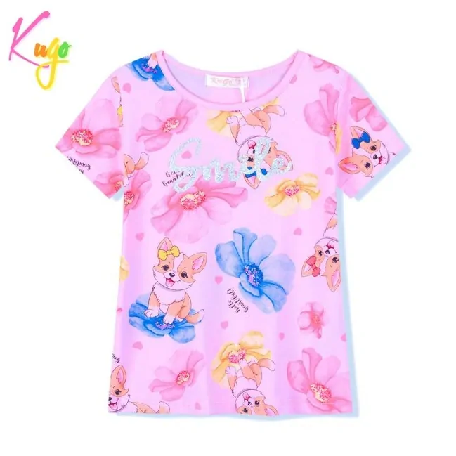 Dívčí bavlněné tričko Kugo s krátkým rukávem a obrázky pejsků a květ...