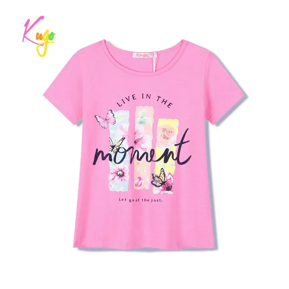 Dívčí bavlněné tričko Kugo s krátkým rukávem a obrázkem s jarním motivem. Tričko je vyrobeno z příjemného bavlněného materiálu s příměsí elastanu 5%. Kvalitní, moderní a šik kousek oblečení do dívčího šatníku.