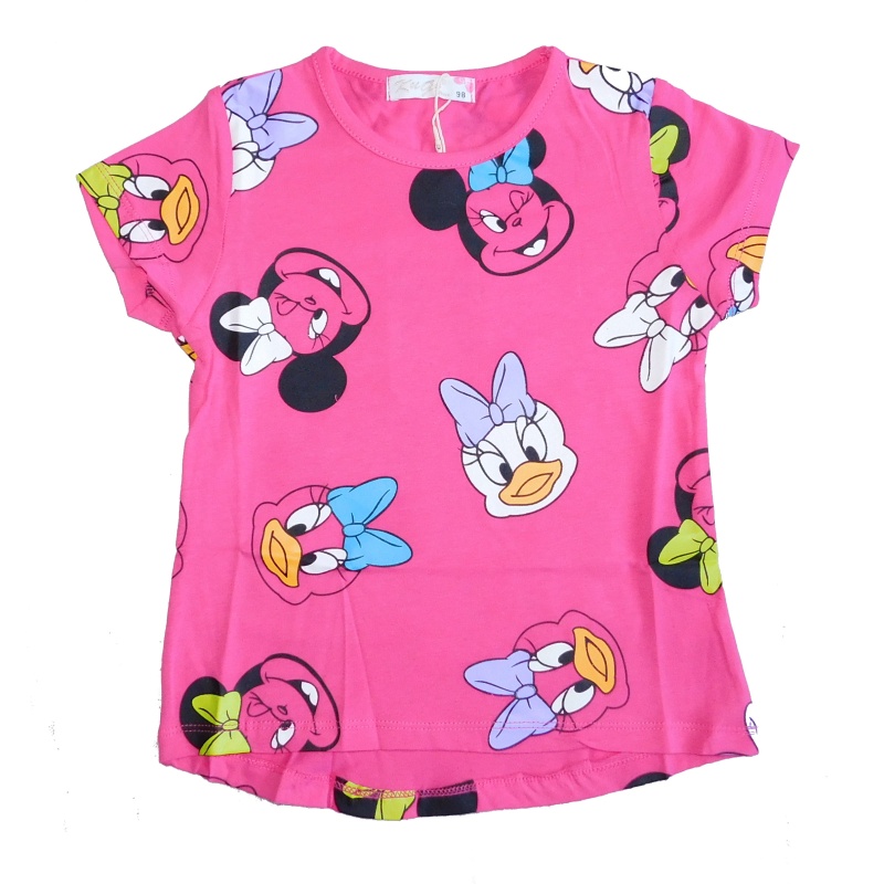 Dívčí bavlněné tričko Kugo s krátkým rukávem a obrázky myšky Minnie a její kamarádky Daisy. Tričko je vyrobeno z kvalitního bavlněného materiálu s příměsí 5% elastanu. Tričko má zadní díl delší než přední ( cca +/- 3 cm ).