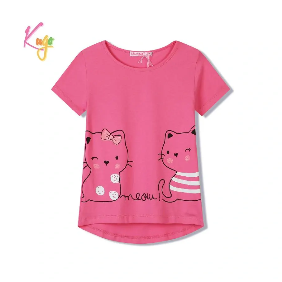 Dívčí bavlněné tričko Kugo s krátkým rukávem a obrázky kočiček. Tričko je vyrobeno z kvalitního bavlněného materiálu s příměsí 5% elastanu. Tričko má zadní díl delší než přední ( cca +/- 3 cm ).