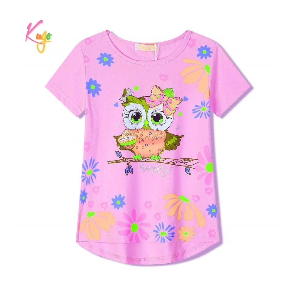 Stylové dívčí bavlněné tričko Kugo s krátkým rukávem a obrázkem sovičky. Tričko je vyrobeno z příjemného bavlněného materiálu s příměsí elastanu 5%. Kvalitní, moderní a šik kousek oblečení do dívčího šatníku.