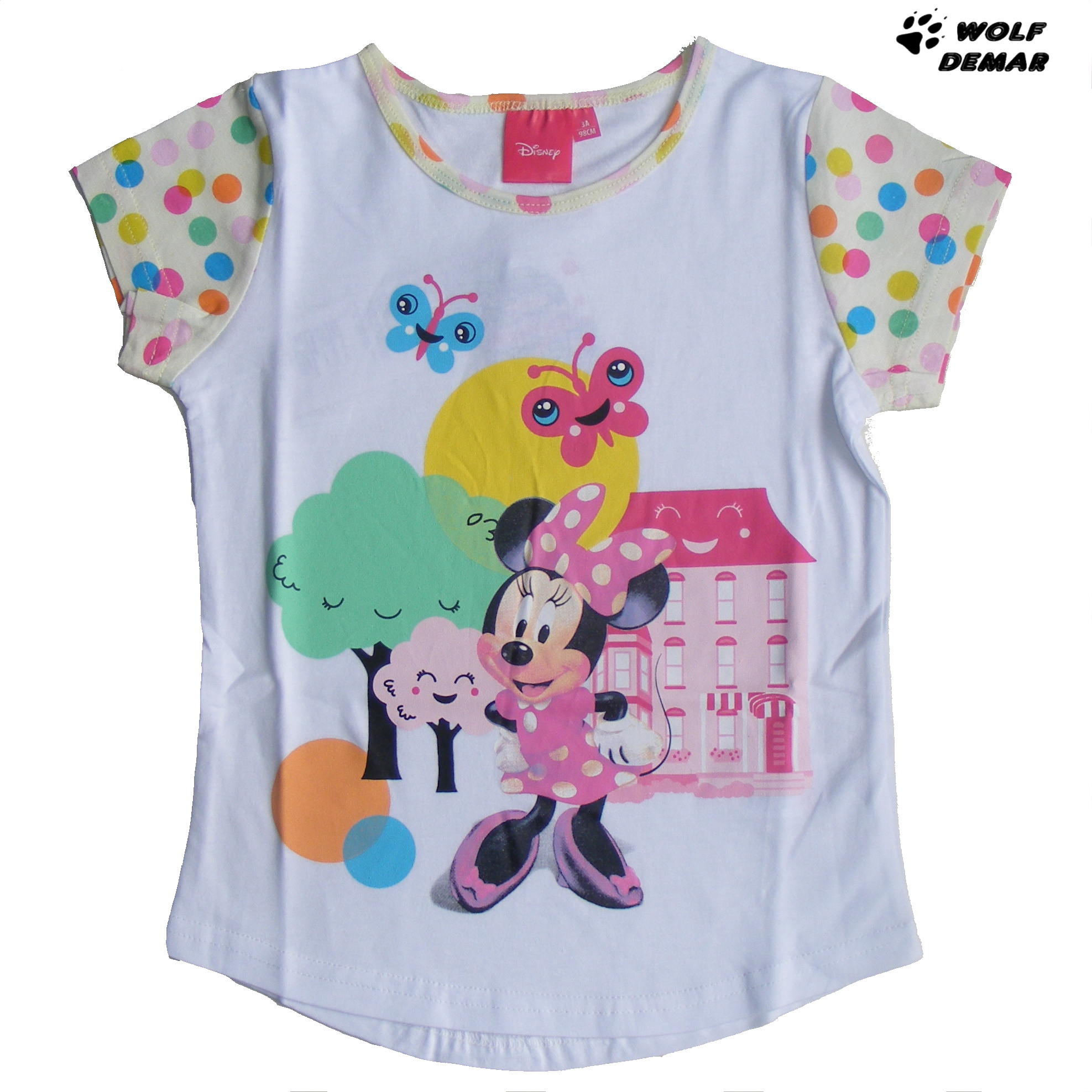 Krásné dívčí bavlněné tričko s krátkým rukávem od firmy Setino s oblíbenou myškou Minnie. Dívčí tričko je vyrobeno z příjemného kvalitního materiálu. Na předním dílu je nažehlený obrázek. Zadní díl trička je jednobarevný a delší než přední.