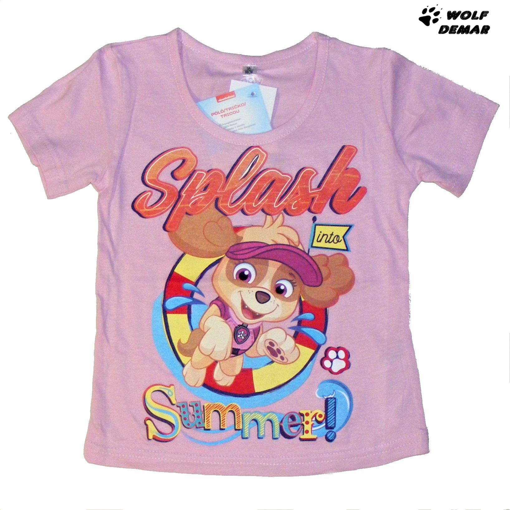 Krásné dívčí bavlněné tričko s krátkým rukávem od firmy Setino s oblíbenou Tlapkovou patrolou. Dívčí tričko je vyrobeno z příjemného kvalitního materiálu. Na předním dílu je nažehlený obrázek. Zadní díl trička je jednobarevný a delší než přední.