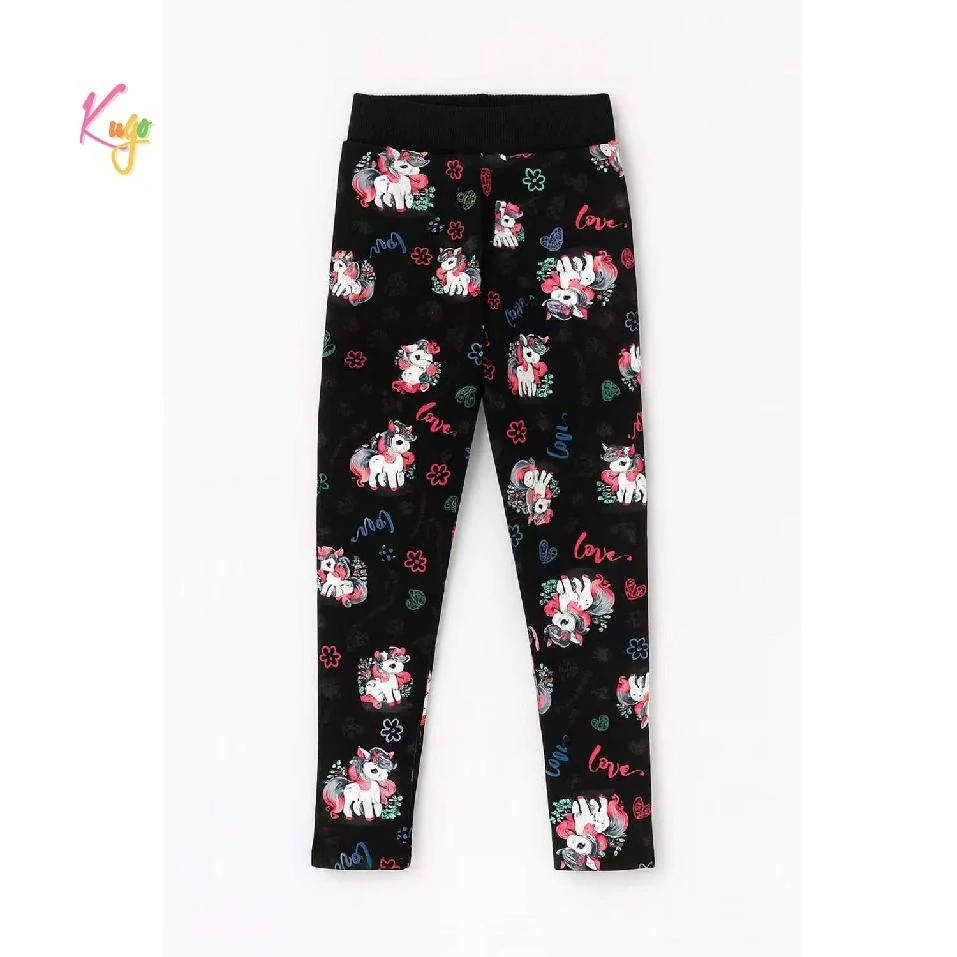 Zateplené dívčí legíny s potiskem poníků značky Kugo pro chladné podzimní a jarní období. Legíny jsou vyrobené z příjemného a kvalitního materiálu. Z rubu je příjemný měkký chloupek. Legíny jsou vhodné pro chladné podzimní počasí.