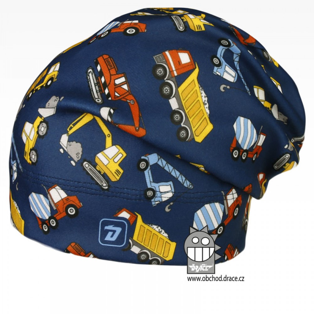 - Chlapecká flísová čepice Dráče Yetti - vzor 01, modrá stavební stroje