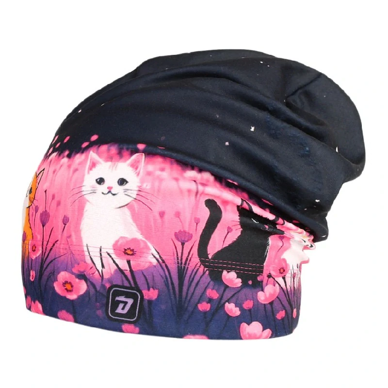 Flísová čepice Dráče Yetti - vzor 41 - tmavě fialová - kočičky