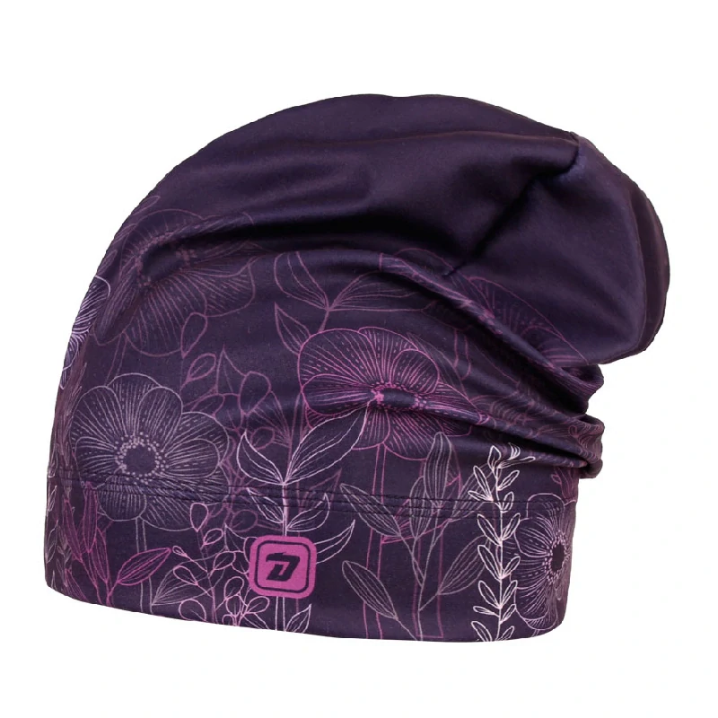 - Flísová čepice Dráče Yetti - vzor 49 - tmavě fialová - květiny
