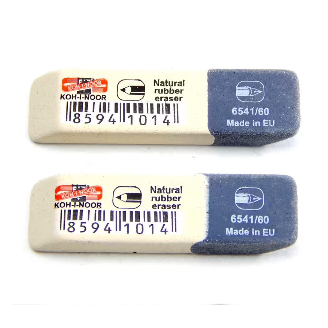 Kancelářská stěrací pryž Koh-i-noor vyrobená na přírodní bázi bez přídavků plastů a ftalátů. Měkká část (bílá) je určena pro stírání grafitových čar středních tvrdostí. Tvrdá část (šedá ) je určena pro vymazávání čar i skvrn inkoustu, tuše, písma psacích strojů a snímacích tuh.