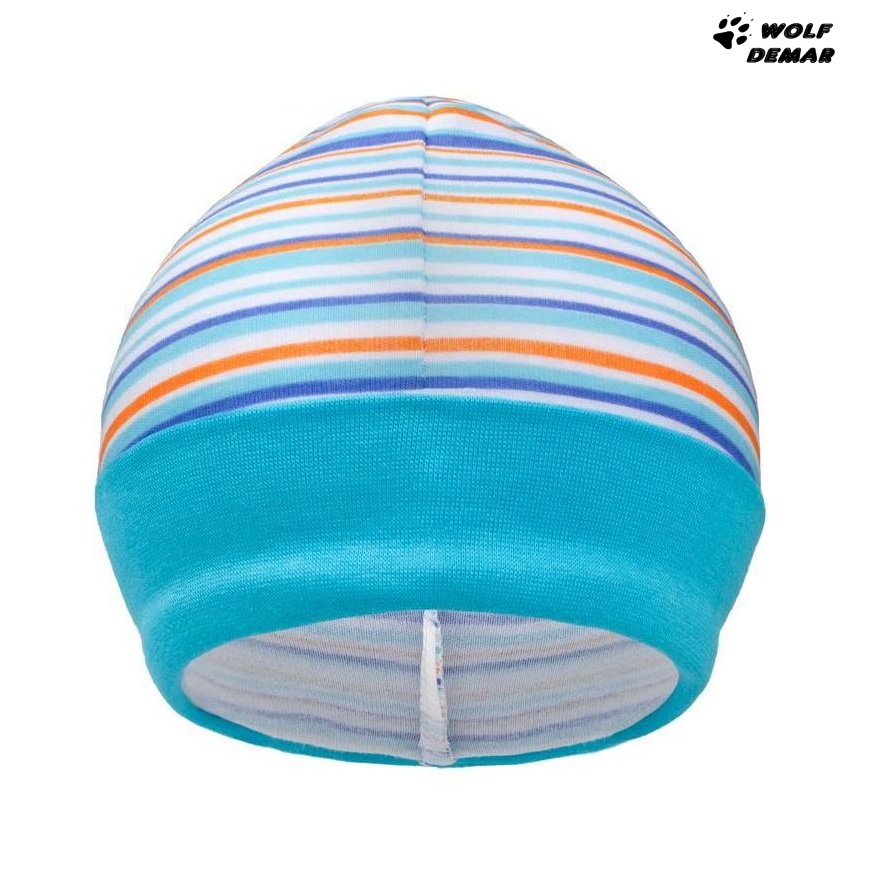 Čepička má široký pružný lem, který krásně kryje oušká a netlačí. Čepičku zdobí originální pruhy.