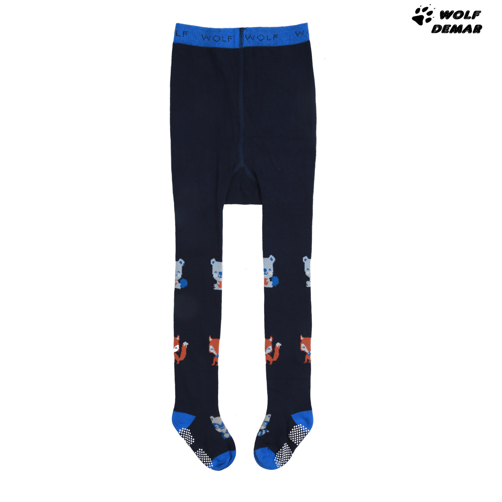Kojenecké punčocháče Wolf P2015 jsou tmavě modré s obrázky zvířátek.