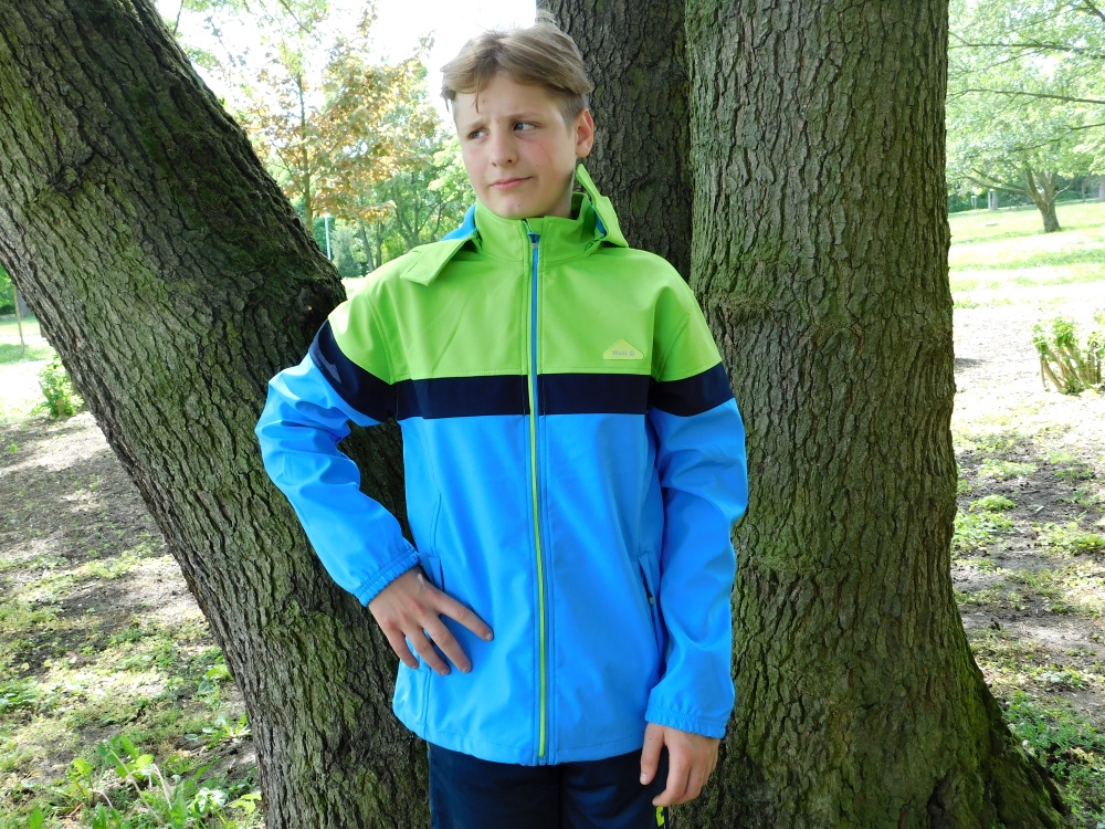 Oblíbené chlapecké softshellové bundy Wolf pro jarní a letní dovádění venku. Bunda je bez fleecové podšívky - vnitřní strana je děrovaná, kapuca je odepínací (na zip), v předu jsou dvě kapsy se zapínáním na zip, rukávy jsou ukončené do gumy, spodní část bundy je volná a můžete ji stáhnout olivkami. Zip je podšitý légou, u krku je ochrana proti poškrábání