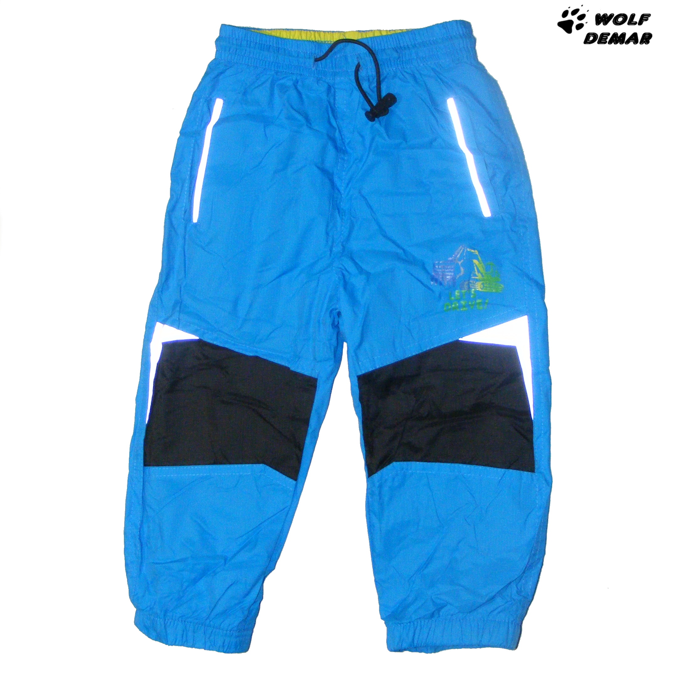 Dětské šusťákové kalhoty s bavlněnou podšívkou od firmy Kugo. Kalhoty mají vpředu 2 kapsy, nohavice do mírně stažené gumy, pas do gumy + olivka na stažení. Jako u většiny dětských výrobků firmy KUGO - reflexní prvky, velmi příjemný měkký materiál, pod levou kapsou obrázek.