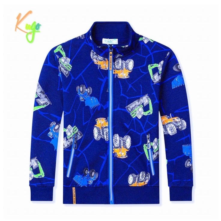 Chlapecká silnější mikina se zapínáním na zip značky Kugo pro chladné počasí. Mikina je vyrobena ze silné bavlny uvnitř s chloupkem. Moderní a kvalitní mikina pro kluky s traktory.