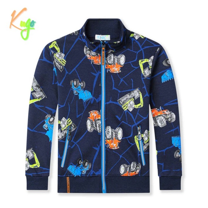 Chlapecká silnější mikina se zapínáním na zip značky Kugo pro chladné počasí. Mikina je vyrobena ze silné bavlny uvnitř s chloupkem. Moderní a kvalitní mikina pro kluky s traktory.