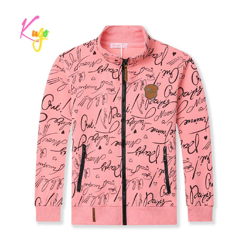 Dívčí silnější mikina se zapínáním na zip značky Kugo pro chladné počasí. Mikina je vyrobena ze silné bavlny uvnitř s chloupkem. Moderní a kvalitní mikina pro dívky s nápisy.